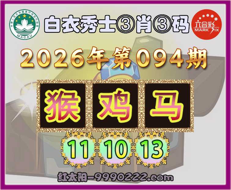 094期:《白衣秀士》 ♦️③肖③码♦️【猴鸡马】【11.10.13】开:虎17