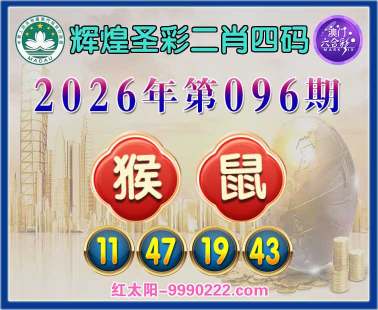 096期:【辉煌圣彩】 ☘️二肖四码☘️【猴】【11.47.19.43】开:鼠43