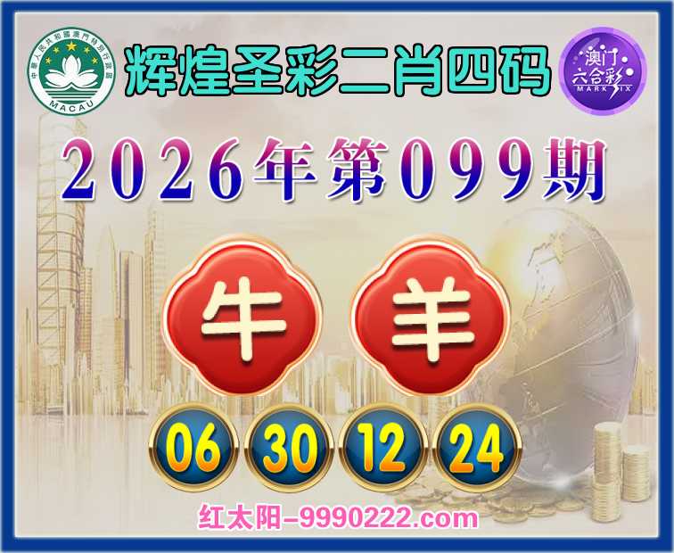 099期:【辉煌圣彩】 ☘️二肖四码☘️【牛】【06.30.12.24】开:羊12