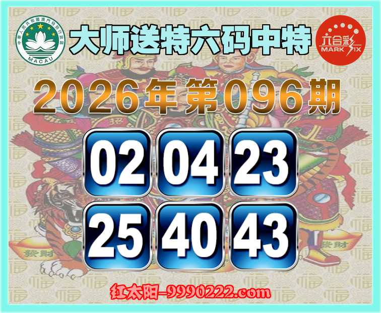 096期:『大师送特』 🧩六码中特🧩【02.04.23.25.40.43】开:43