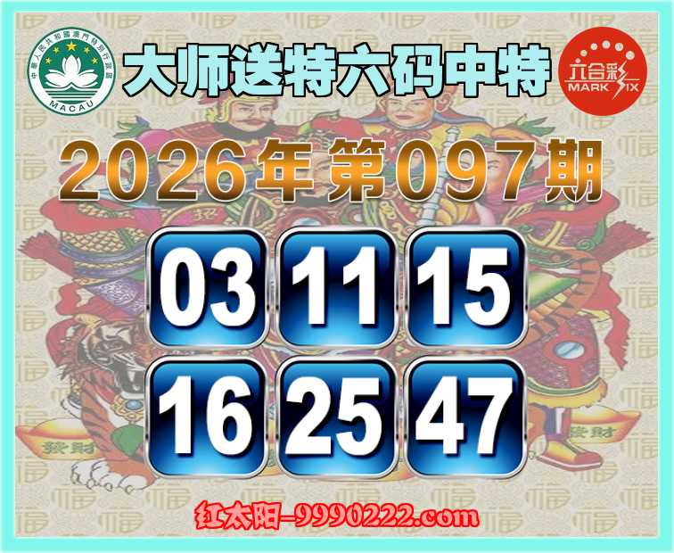 097期:『大师送特』 🧩六码中特🧩【03.11.15.16.25.47】开:11