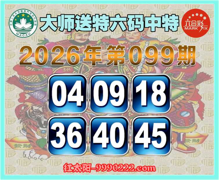 099期:『大师送特』 🧩六码中特🧩【04.09.18.36.40.45】开:12