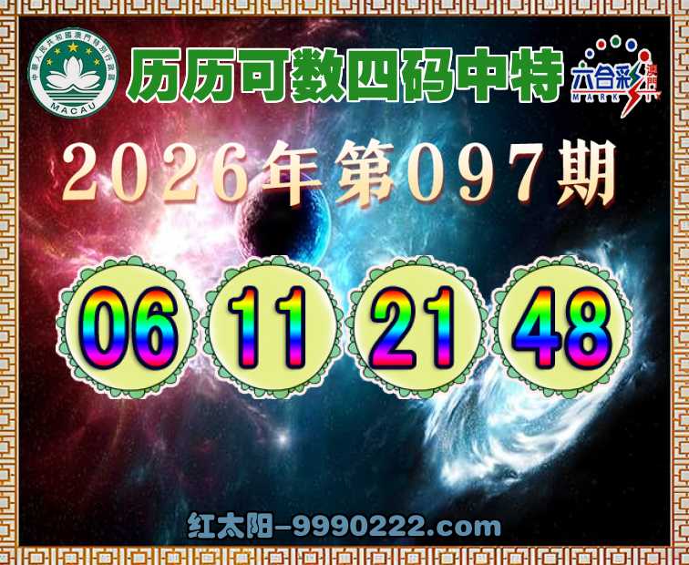 097期:👑历历可数👑四码中特👑【06.11.21.48】开:11