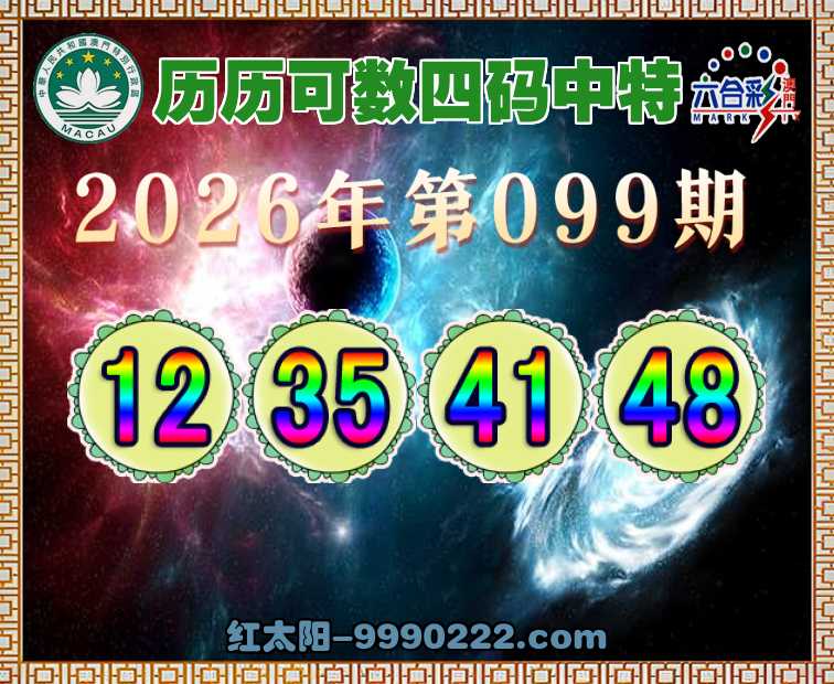 099期:👑历历可数👑四码中特👑【12.35.41.48】开:12