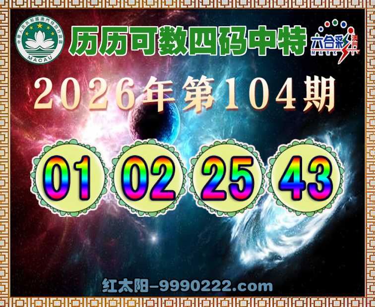 104期:👑历历可数👑四码中特👑【01.02.25.43】开:01