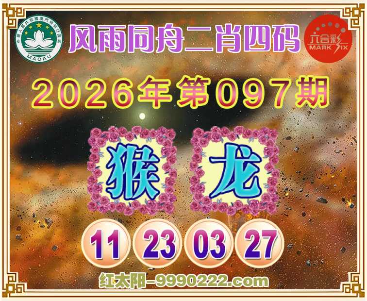 097期: 🥽『风雨同舟』 🥽二肖四码🥽【龙】【11.23.03.27】开:猴11