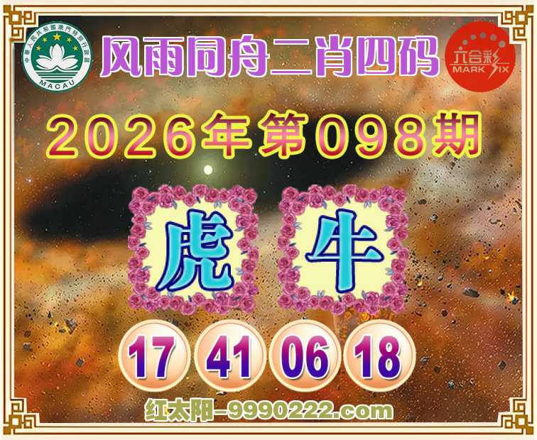 098期: 🥽『风雨同舟』 🥽二肖四码🥽【牛】【17.41.06.18】开:虎17