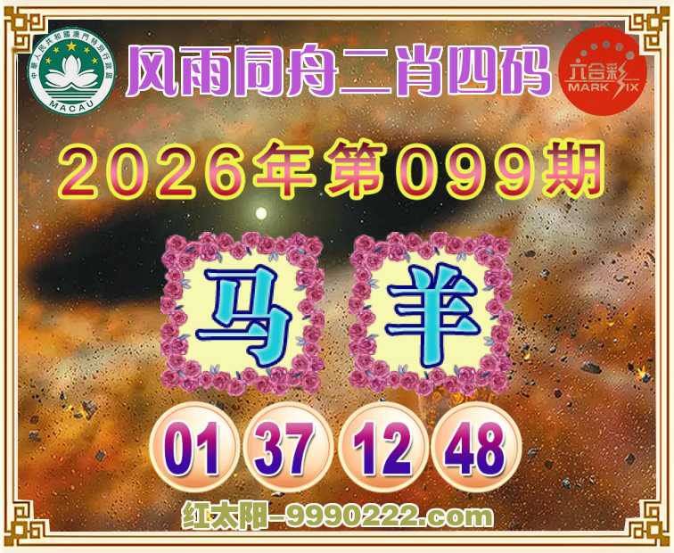 099期: 🥽『风雨同舟』 🥽二肖四码🥽【马】【01.37.12.48】开:羊12