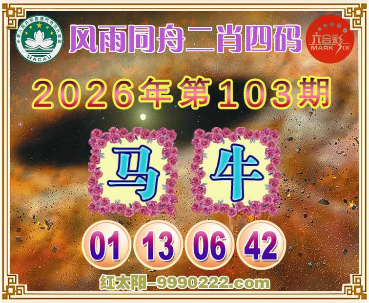 103期: 🥽『风雨同舟』 🥽二肖四码🥽【马】【01.13.06.42】开:牛06