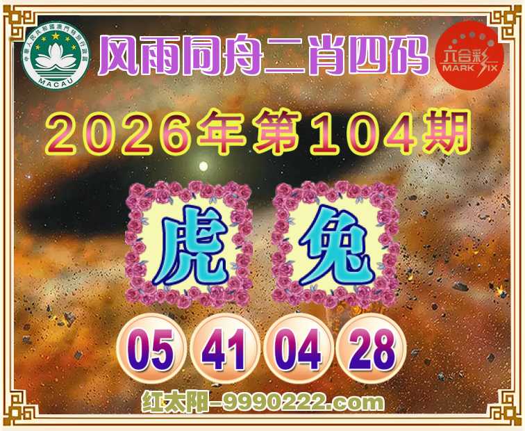 104期: 🥽『风雨同舟』 🥽二肖四码🥽【虎兔】【05.41.04.28】开:马01